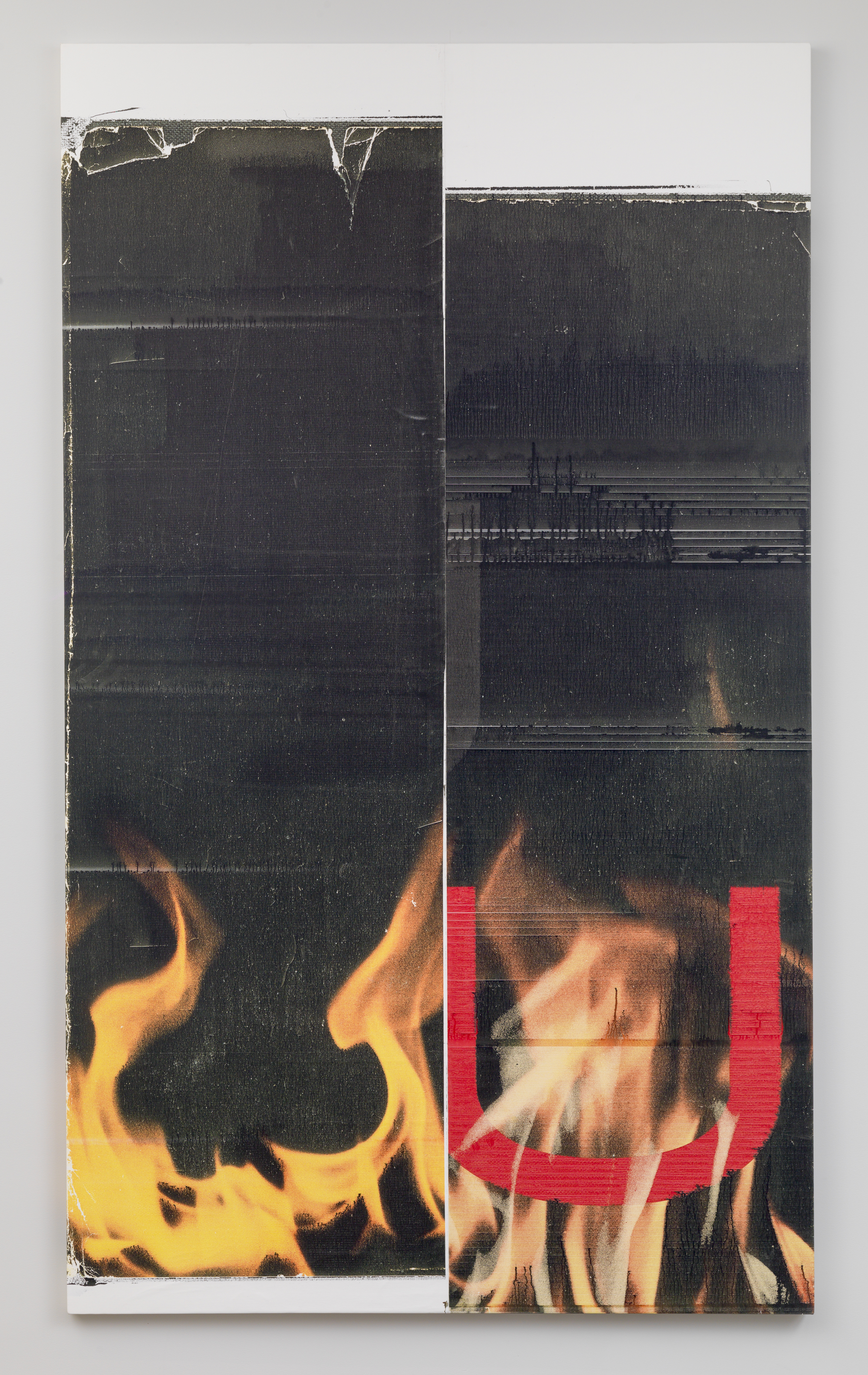 Upon entering the largest room, viewers find themselves in a visual standoff as Guyton’s and Tuazon’s works play off one another. The disjointed black forms in Guyton’s tableaus seem to repeat three-dimensionally in Tuazon’s cracked totemic sculpture in the adjacent gallery. What appears to crumble stands strong as natural light spills through the casement windows.